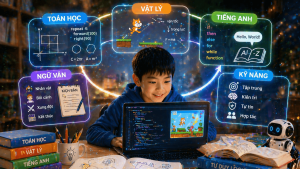 Nhiều phụ huynh lo lắng rằng việc cho con học thêm lập trình sẽ chiếm mất thời gian học các môn chính khóa như Toán, Văn, Anh. Tuy nhiên, các nghiên cứu giáo dục hiện đại đã chứng minh điều ngược lại: Lập trình chính là “chất xúc tác” giúp trẻ hiểu sâu và học tốt hơn các môn học tại trường. Tại Lập trình KID, chúng tôi không chỉ dạy trẻ viết code, mà chúng tôi giúp trẻ xây dựng một “hệ điều hành trí tuệ” mạnh mẽ, giúp con xử lý mọi bài tập trên lớp một cách thông minh và hiệu quả hơn.