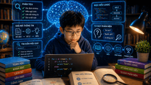 Chúng ta đang sống trong một thời đại mà mỗi ngày trẻ phải tiếp nhận lượng thông tin bằng cả một năm của thế hệ trước. Nỗi lo của phụ huynh không còn là con “thiếu thông tin” mà là con “đọc nhưng không hiểu” hoặc dễ bị dẫn dắt bởi tin giả. Tại Lập trình KID, chúng tôi nhận thấy lập trình là phương pháp tốt nhất để rèn luyện Kỹ năng Đọc hiểu. Bởi vì trong thế giới của máy tính, mọi thông tin đều phải được giải mã một cách chính xác tuyệt đối. Học code giúp trẻ hình thành “bộ lọc” thông minh, biết cách tìm kiếm, phân tích và thấu hiểu bản chất của mọi vấn đề.