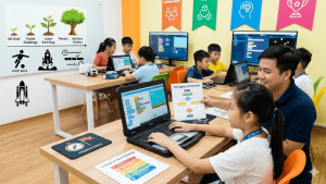 - Đối mặt với Bug (Lỗi): Trong lập trình, lỗi không phải là dấu chấm hết, mà là một lời mời gọi khám phá. Trẻ học cách bình tĩnh rà soát từng dòng code, thử nghiệm hết phương án này đến phương án khác cho đến khi tìm ra lời giải.