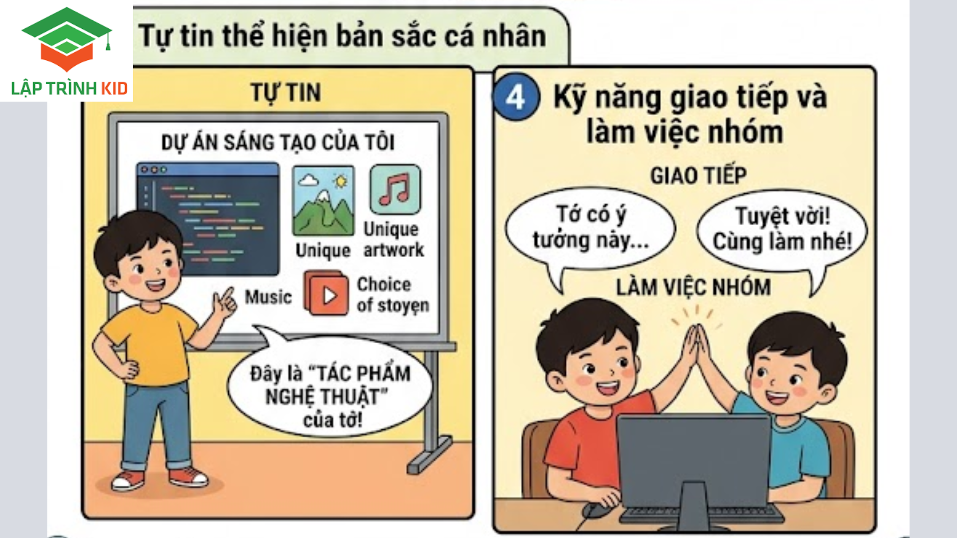 Bạn muốn con mình không chỉ giỏi công nghệ mà còn là một đứa trẻ giàu tình cảm và bản lĩnh? Hãy để lập trình là người thầy rèn luyện tâm hồn cho bé. Khám phá khóa học “Lập trình khơi nguồn cảm xúc” tại Lập trình KID ngay hôm nay. Đăng ký để nhận buổi đánh giá năng lực tư duy và EQ miễn phí cho con!